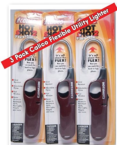 All images of 2 pack + Bonus Pack of Calico Hot Shot 2 Utility Lighter, Safe for Camping/grilling/home, Adjustable Flame with 25% More Fuel