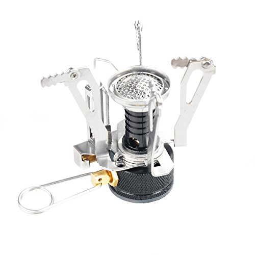 OuterStar Ultralight Mini Backpacking Outdoor Canister Camping Stove Gas-powered Burner Cookout Stove Portable BBQ Picnic PocketRocket Stove with Piezo Ignition System(Carry Box Included) (Silver)